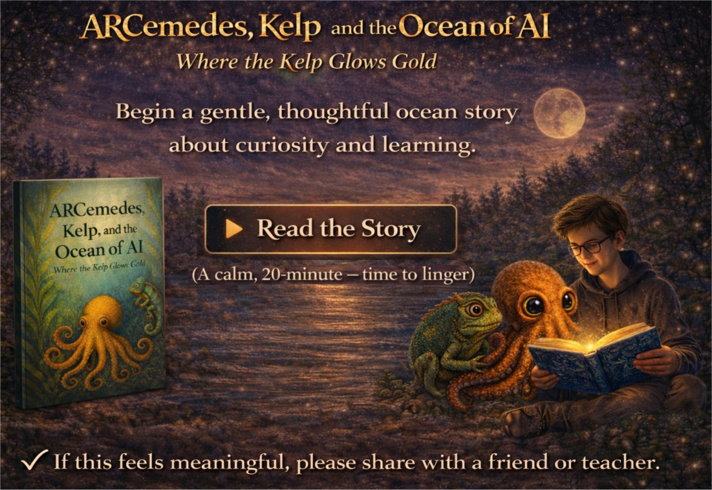 Offers a gentle way to explore big ideas—through curiosity, care, and thoughtful questions—without fear, hype, or technical demands. It’s not about learning faster. It’s about learning more wisely. Take a few quiet minutes. Let the story do what good stories do best.